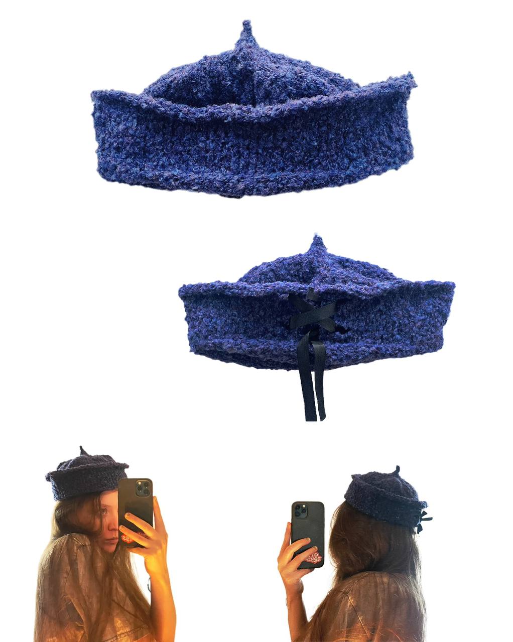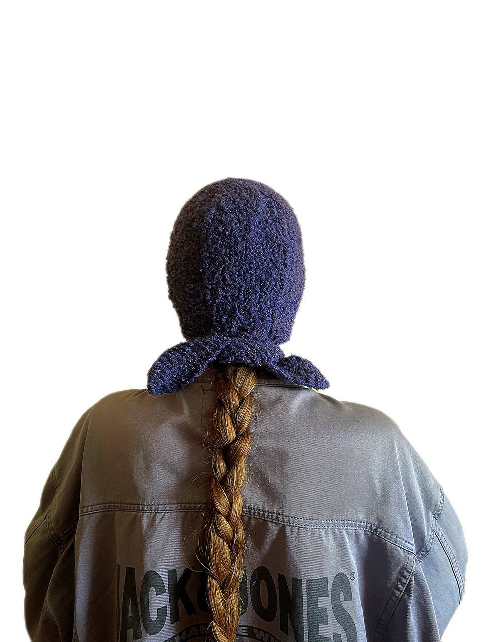 Blue hat with ties